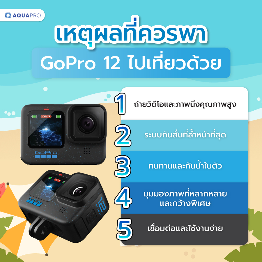 อยากรู้ไหมว่าทำไม คุณถึงควรพก GoPro HERO12 Black ไปเที่ยวด้วย? เพราะ GoPro HERO12 Black เป็นกล้องที่ออกแบบมาเพื่อการผจญภัย และเก็บภาพช่วงเวลาสำคัญได้อย่างครบถ้วนและง่ายดาย โดยเฉพาะในสถานการณ์ที่กล้องทั่วไปไม่สามารถทำได้ นี่คือเหตุผลหลักที่คุณไม่ควรพลาด